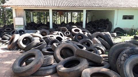 Os pneus depositados no pátio da escola agrícola de Juara vão para reciclagem.