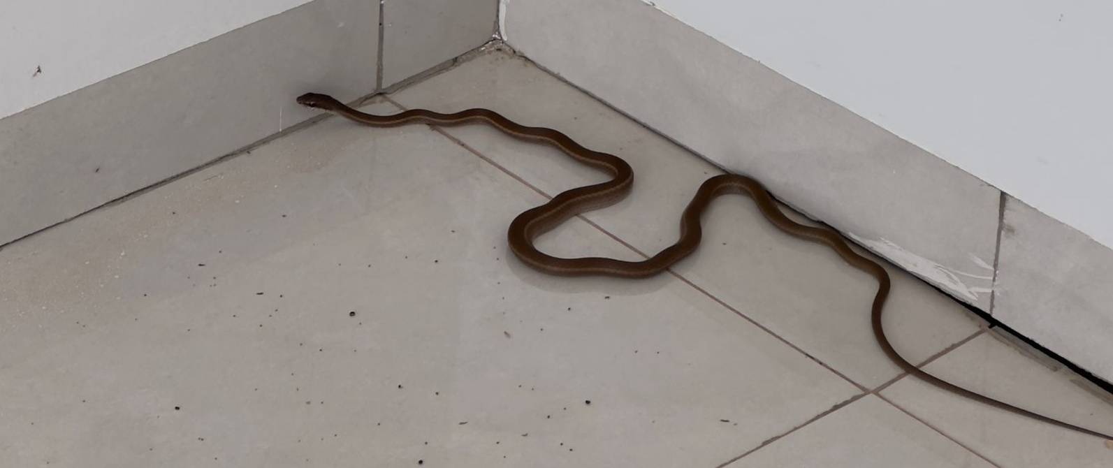 Bombeiros capturam cobra da espécie cipó em residência no bairro Ecopark, em Guarantã do Norte