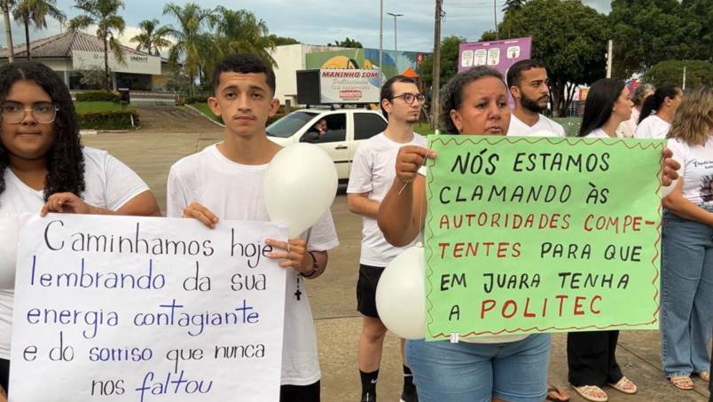 A mobilização teve início na Avenida Ayrton Senna e seguiu até a Praça dos Colonizadores, reunindo familiares, amigos e membros da comunidade. O principal objetivo foi reivindicar a implantação da Politec no município, considerada essencial para fortalecer a investigação criminal, além de pedir justiça pela trágica morte do jovem Carlos Eduardo Jesus de Machado, de apenas 20 anos.