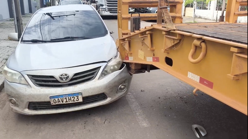 Um acidente registrado na manhã desta quarta-feira (01), no entroncamento da Avenida Rio Arinos com a Rua Corumbá (trecho próximo à Avenida Rio de Janeiro), acendeu um alerta sobre a segurança viária no centro da cidade. Um caminhão de grande porte, carregado com grama, atingiu um veículo de passeio que estava devidamente estacionado enquanto tentava realizar uma conversão em um trecho estreito da via.