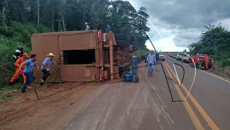 Uma ocorrência de tombamento de carreta mobilizou equipes de resgate na tarde desta quinta-feira (12), em uma rodovia da região de Juara. O acidente envolveu um veículo que transportava aproximadamente 65 cabeças de gado.