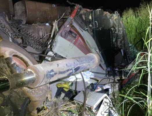 Corpo de Bombeiros retira corpo de vítima presa às ferragens de carreta após acidente