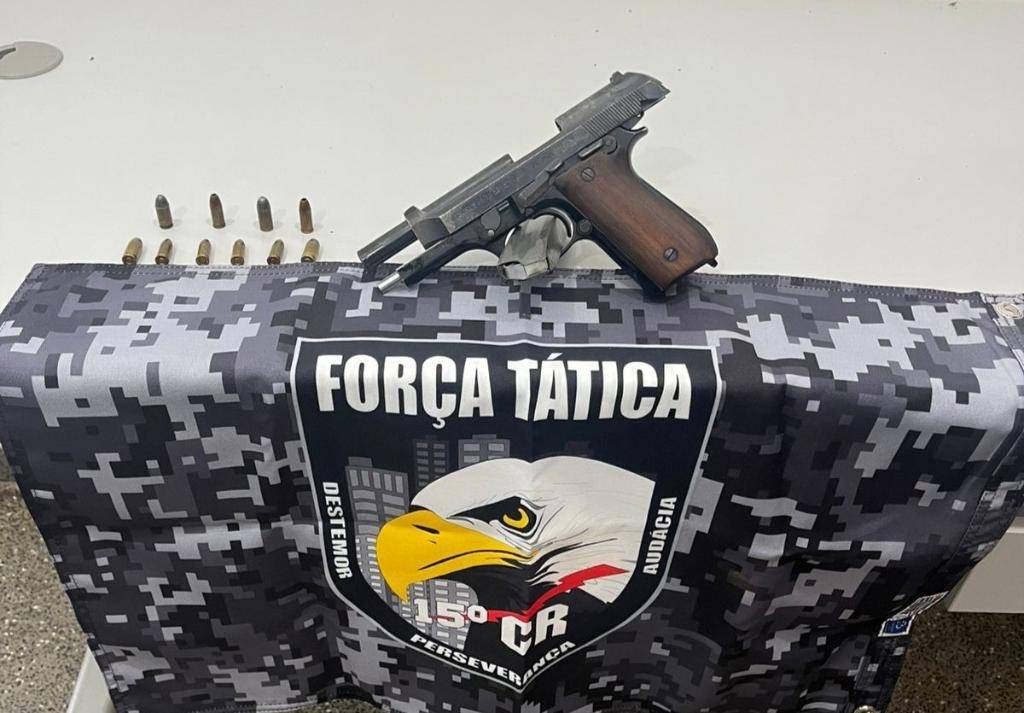 Os policiais foram até o local, encontraram a arma e um carregador. Além disso, foi constatado um mandado de prisão em aberto, expedido pela Justiça do município, contra o homem, suspeito por tentativa de homicídio.