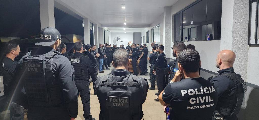 Na operação, são cumpridas 24 ordens judiciais, sendo 16 mandados de busca e apreensão e oito de prisão preventiva, expedidas pela Segunda Vara da Comarca de Peixoto de Azevedo.