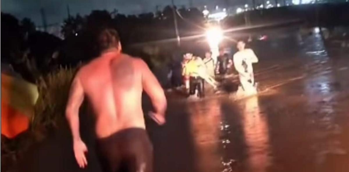 No local, o policial flagrou uma caminhonete com cinco ocupantes tentando atravessar a rua, sem sucesso. Devido à enchente causada pelo transbordamento de um córrego, o veículo começou a submergir.