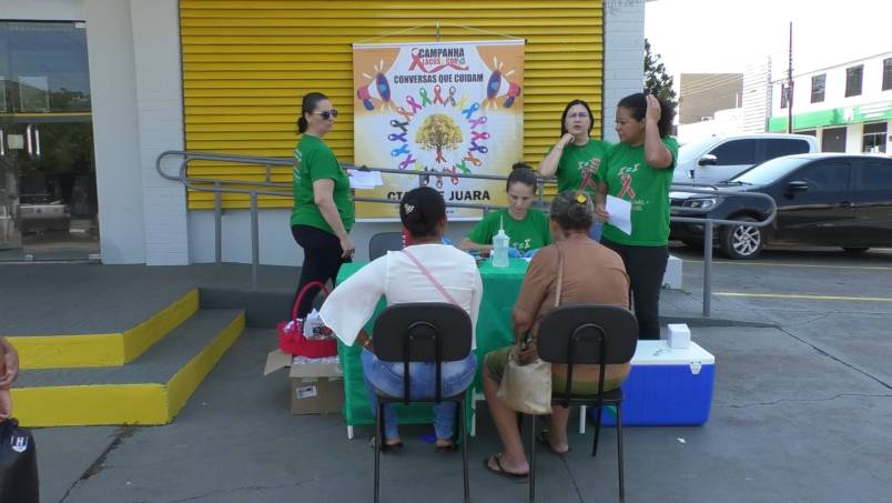 Na manhã desta sexta-feira (03), a equipe do Centro de Testagem e Aconselhamento (CTA) de Juara realizou uma importante ação de saúde em frente ao semáforo da Avenida Rio Arinos, como parte das campanhas Outubro Rosa e Outubro Verde.